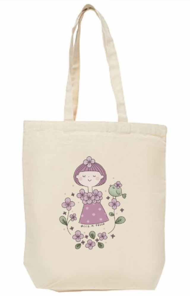 キャンバストートバッグ☆ピンクのお花のおんなの子